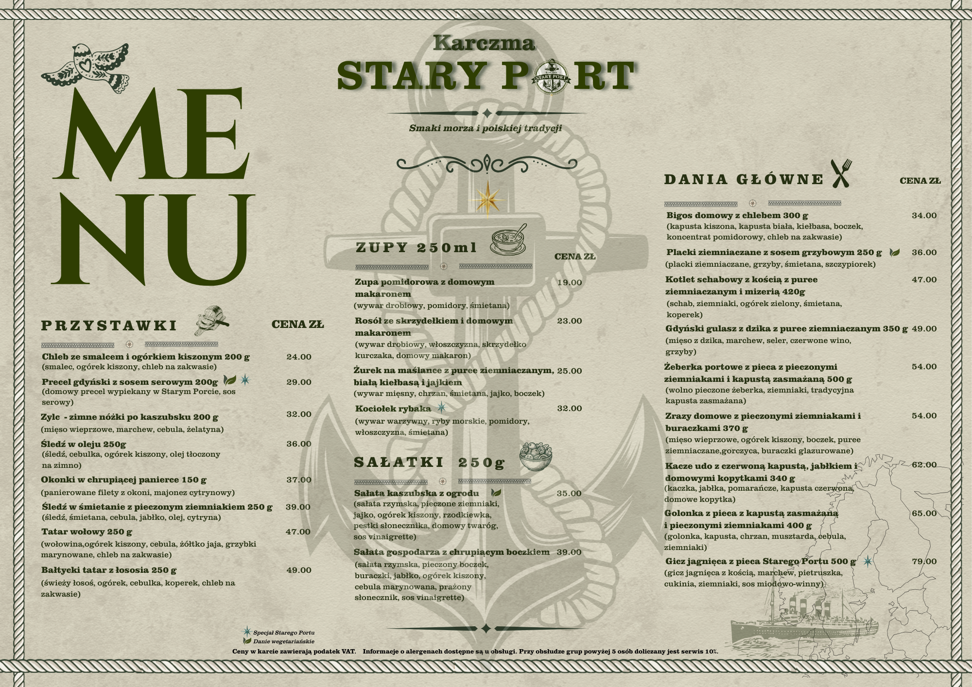 Karczma Stary Port to restauracja w centrum Gdyni, inspirowana historią miasta i jego portowym charakterem. Kilka kroków od Skweru Kościuszki tworzymy miejsce, w którym tradycyjna kuchnia polska spotyka się z nadmorskim klimatem i gościnnością, jaką pamięta się z dawnych lat.